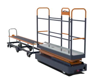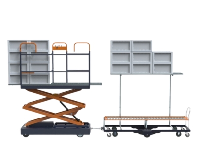 - Easy transfer of crates from the pipe rail trolley to the BeMotion Transport Trolley and back